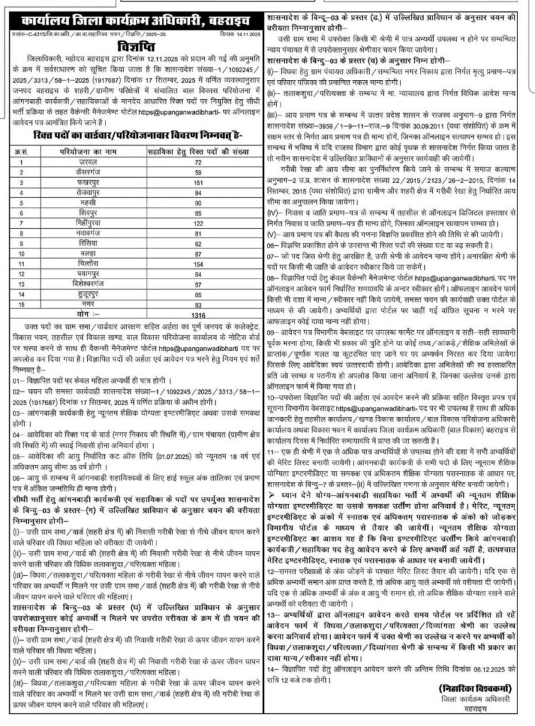 आंगनवाड़ी भर्ती के लिए योग्यता, चयन प्रक्रिया आदि के लिए निम्नलिखित विज्ञापन पढ़े