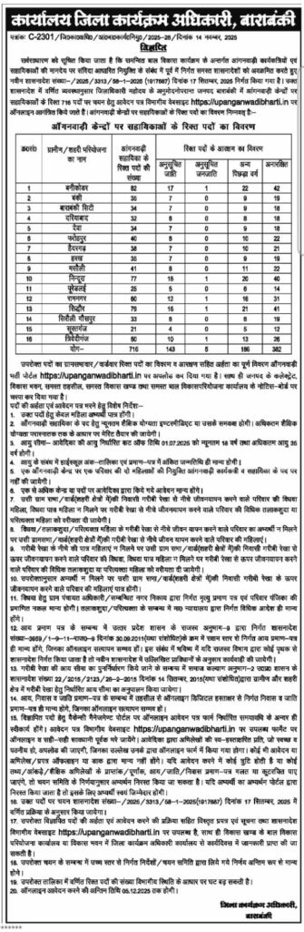 इसके अलावा आंगनवाड़ी सहायिका के लिए भदोही, आजमगढ़, मेरठ, वाराणसी,सोनभद्र, महाराज गंज, रामपुर , आगरा , फर्रूखाबाद, संभल व मिर्जापुर में आवेदन जारी है. जिनकी लास्ट डेट निकट है