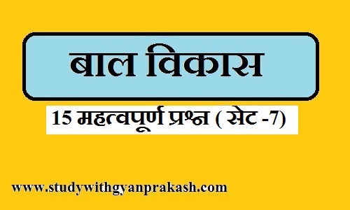बाल विकास से सम्बन्धित महत्वपूर्ण प्रश्नों का सातवा सेट उपलब्ध करा रहें हैं , जो की आगामी शिक्षक भर्ती परीक्षाओं में पूंछे जायेंगें, अतः आप सभी अपनी परीक्षा की तैयारी को और सुगम बनाने के लिये इन प्रश्नों का अध्ययन अवश्य करें !