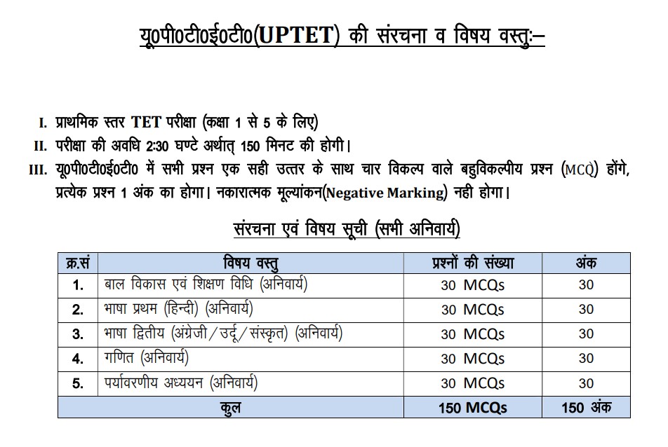 उत्तर प्रदेश शिक्षा सेवा चयन आयोग नें यूपीटीईटी 2026 के लिए प्रायमरी व उच्च प्रायमरी के लिए पाठ्यक्रम जारी कर दिया है, आयोग की हाल ही की नोटिस के अनुसार परीक्षा दो, तीन और चार जुलाई को आयोजित होगी.