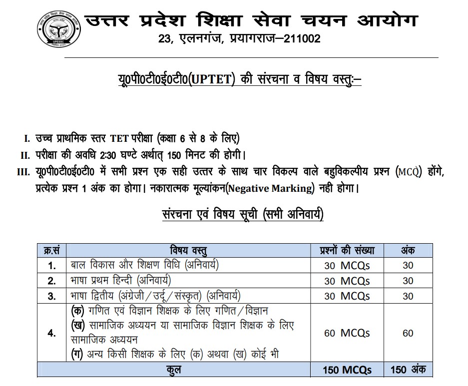उत्तर प्रदेश शिक्षा सेवा चयन आयोग नें यूपीटीईटी 2026 के लिए प्रायमरी व उच्च प्रायमरी के लिए पाठ्यक्रम जारी कर दिया है, आयोग की हाल ही की नोटिस के अनुसार परीक्षा दो, तीन और चार जुलाई को आयोजित होगी.